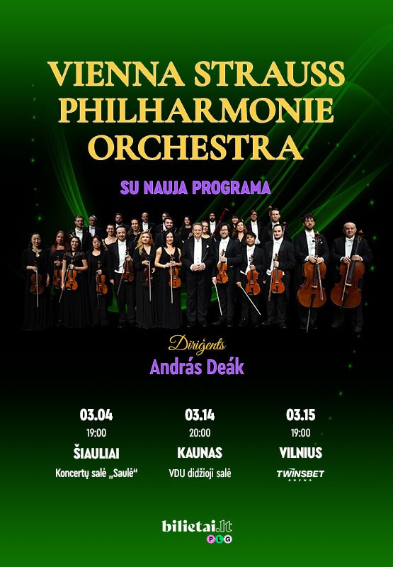 Bilietus platina: https://www.bilietai.lt/lit/renginiai/koncertai/vienna-strauss-philharmonie-orchestra--siauliai-490259/